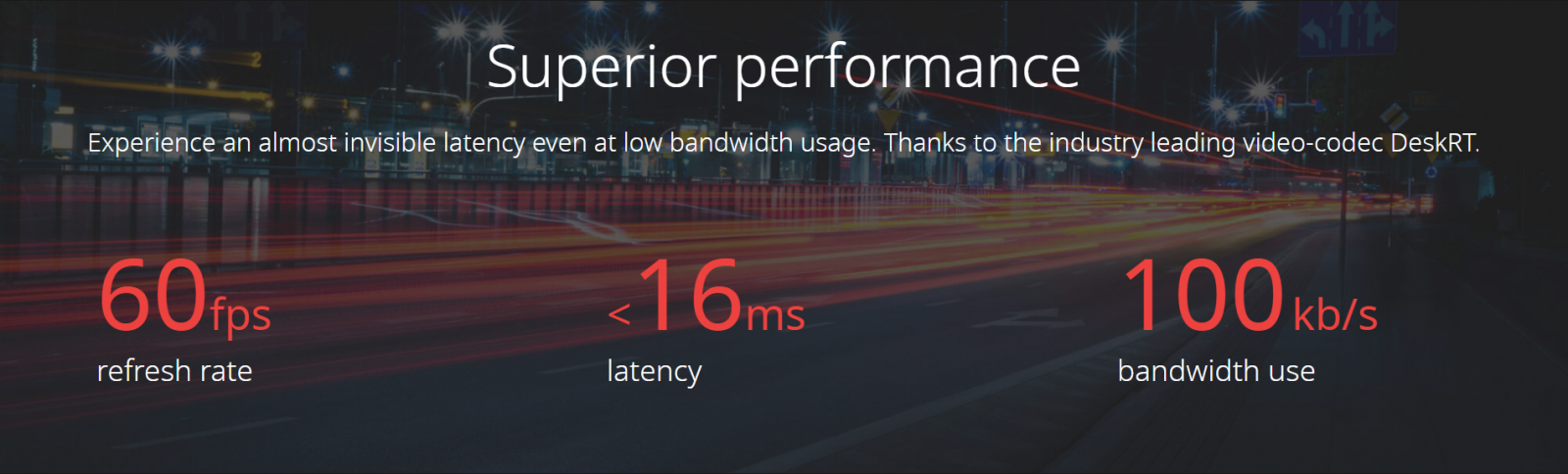 AnyDesk ทำให้ผู้ใช้งานได้สัมผัสประสบการณ์รีโมทคอมพิวเตอร์ที่ลื่นไหล ด้วยการนำสัญญาณภาพแบบเรียลไทม์จากเครื่องปลายทางมาแสดงบนหน้าจอของเครื่องที่เราใช้งานอยู่ด้วยอัตราเฟรมเรตที่สูงถึง 60 fps. (ภาพต่อวินาที) ผ่านความเร็วการเชื่อมต่ออินเทอร์เน็ตในระดับทั่ว ๆ ไป ยกระดับประสิทธิภาพการ Remote Support หรือการทำงานจากระยะไกลในช่วงเวลา WFH ได้เป็นอย่างดี และด้วยความหน่วงในการสื่อสารข้อมูลที่ต่ำเพียง 16 ms. (มิลลิวินาที) ทำให้อุปกรณ์ปลายทางตอบสนองการสั่งงานจากระยะไกลได้อย่างรวดเร็ว